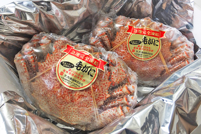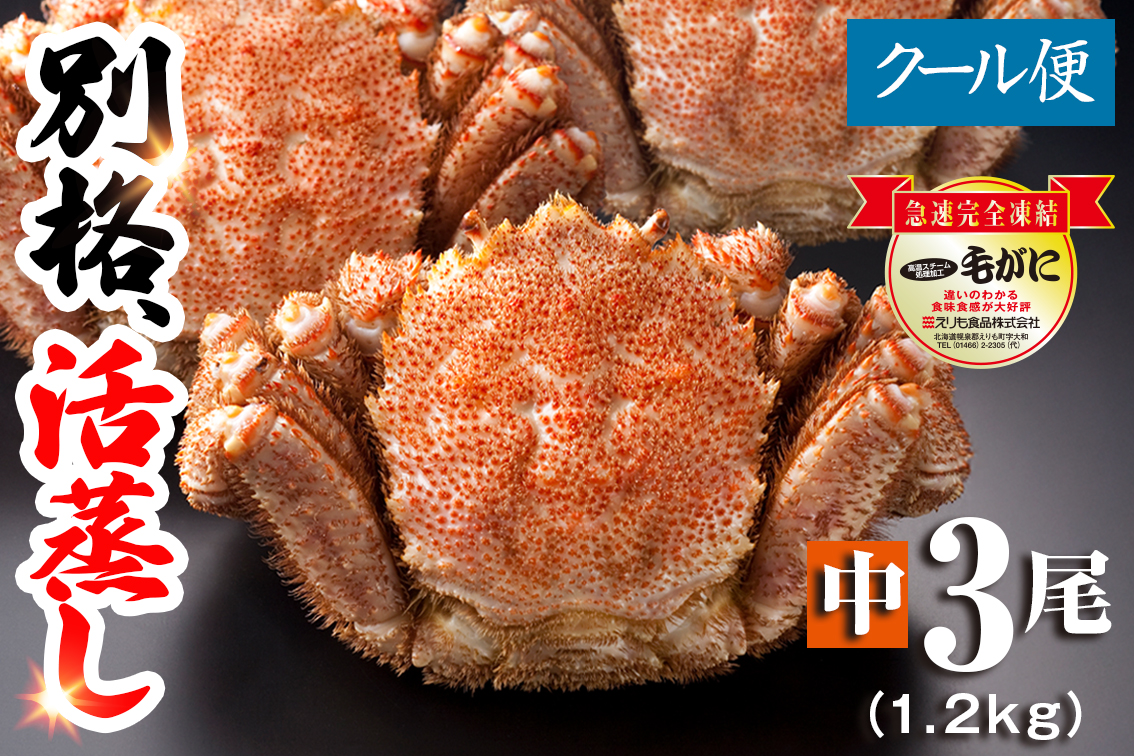 【名物】北海道産 活蒸し毛蟹 中3尾(1.2kg)