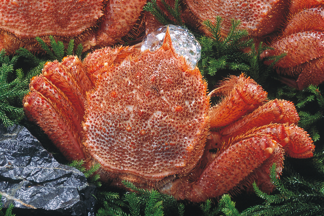 甲羅が硬く、身がぎっしり詰り、どっしりした重さがある蟹は、脱皮してからしっかり時間が経った堅蟹(かたがに)。これらは最高品質ランクの高級食材として流通します。(身がスカスカで水っぽい脱皮直後のものは若蟹(わかがに)と呼ばれて安値で取引されています)