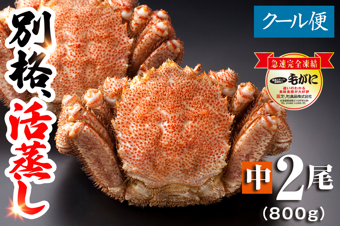 【名物】北海道産 活蒸し毛蟹 中2尾(800g)