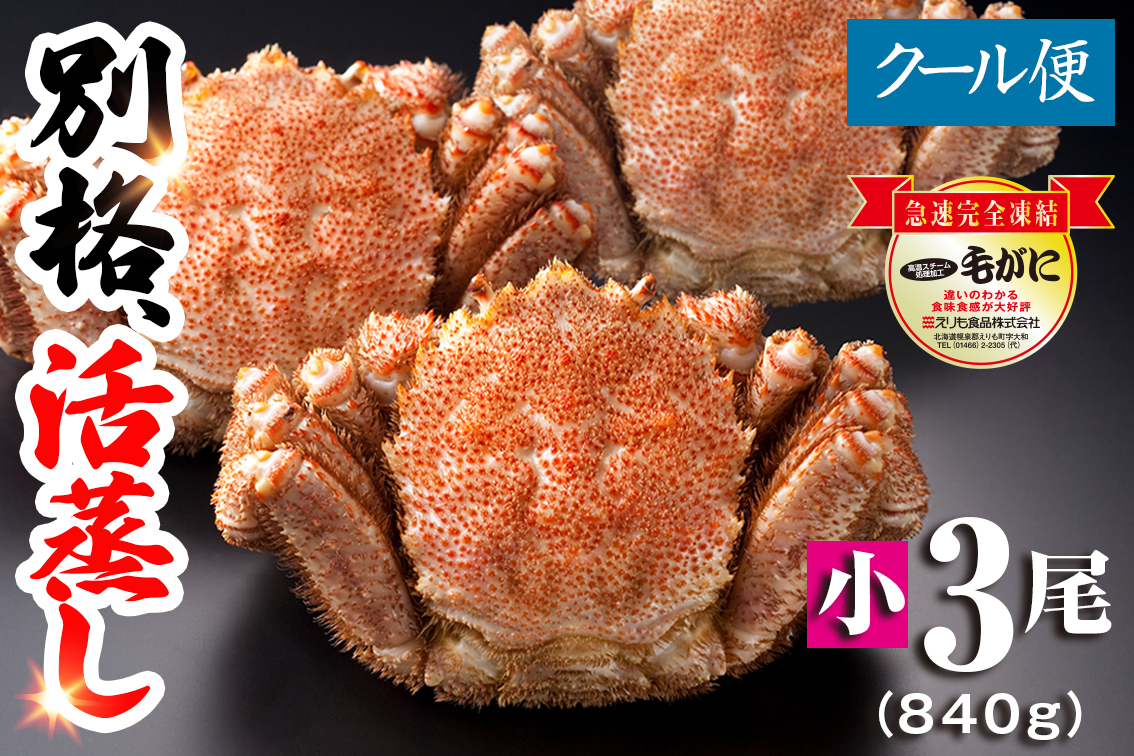 【名物】北海道産 活蒸し毛蟹 小3尾(840g)