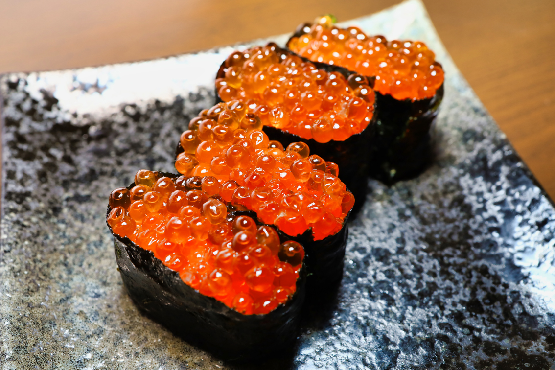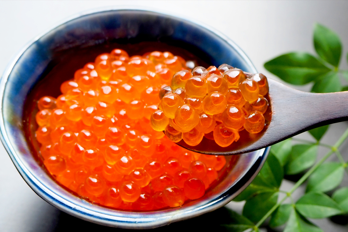 北海道沿岸で秋口に水揚げされる、天然秋鮭の高鮮度卵のみを使用しています。仕込みは時間勝負。熟練の職人たちが、完熟前の皮のやわらかい新鮮卵に、本醸造醤油の旨みをたっぷりと染み込ませて卵の旨みを引き出します。本品はプロの料理人の方々からも定評をいただく人気商品です。大切な方へのギフトにも、ぜひ、ご用意ください。