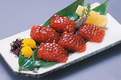 北海道産秋鮭の新鮮な完熟卵を塩蔵した数量限定品です。粒ひとつひとつが透明感のある紅色で、しっかりとしたツヤとハリがあるのは卵質が良い証し。温かいご飯とともに、卵のうま味とコクをお楽しみください。(グラム調整のため「切れ子」が入る場合があります)