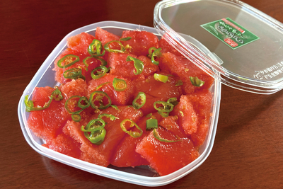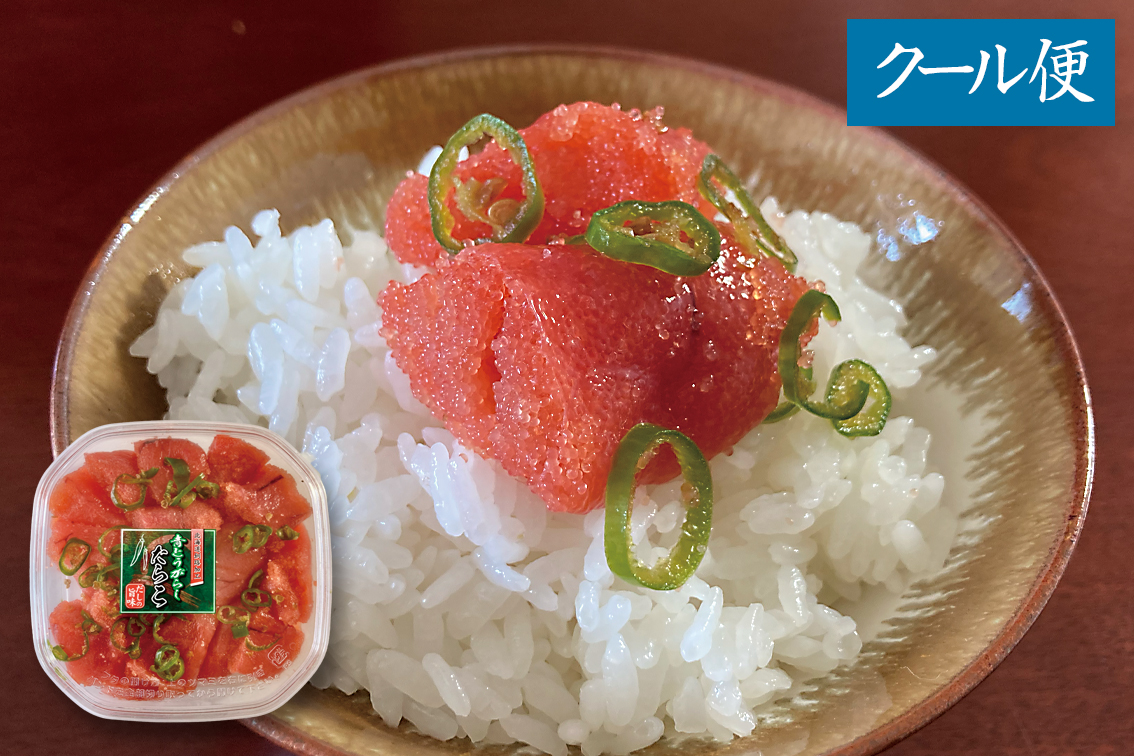 爽やかな辛さの青とうがらしを使った、だしの効いた一口サイズのたらこです。粒のしっかりした切れ子は、ほんのり柚子風味。ご飯がとまらない人気商品です。
