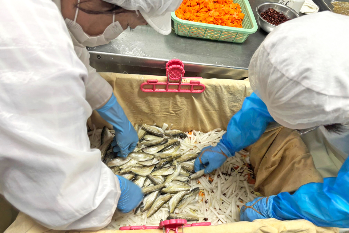 北海道産の獲れたてのはたはたと、野菜・ご飯・麹などを加えてじっくり発酵させた北海道の郷土料理です。運が良ければ、はたはたのブリコ(卵)も味わえます。毎年、夏の終わりになると「今年の予約はいつから?」と各地からお電話をいただく人気商品です。自然解凍してそのままお召し上がりください。