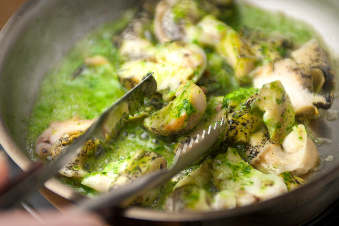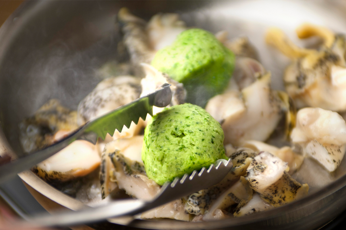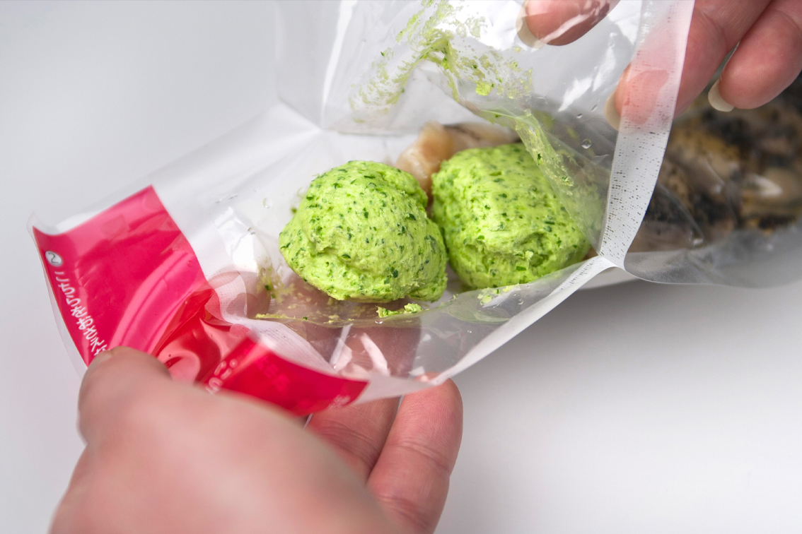 獲れたての大粒の灯台つぶ貝を生きたまま軽く茹でてスライスし、無塩バターを使ったガーリックバターと合わせました。鮮やかな緑色はパセリを使用。にんにくと合わせることで、風味豊かな味に仕上がっています。解凍して開封し、フライパンでサッと焼くだけ。ビールにも白ワインにも合う上品なおつまみが、簡単に出来上がります。