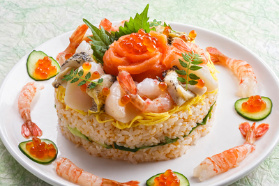 - ▼お刺身|秋鮭・えび・帆立貝・灯台つぶ貝
