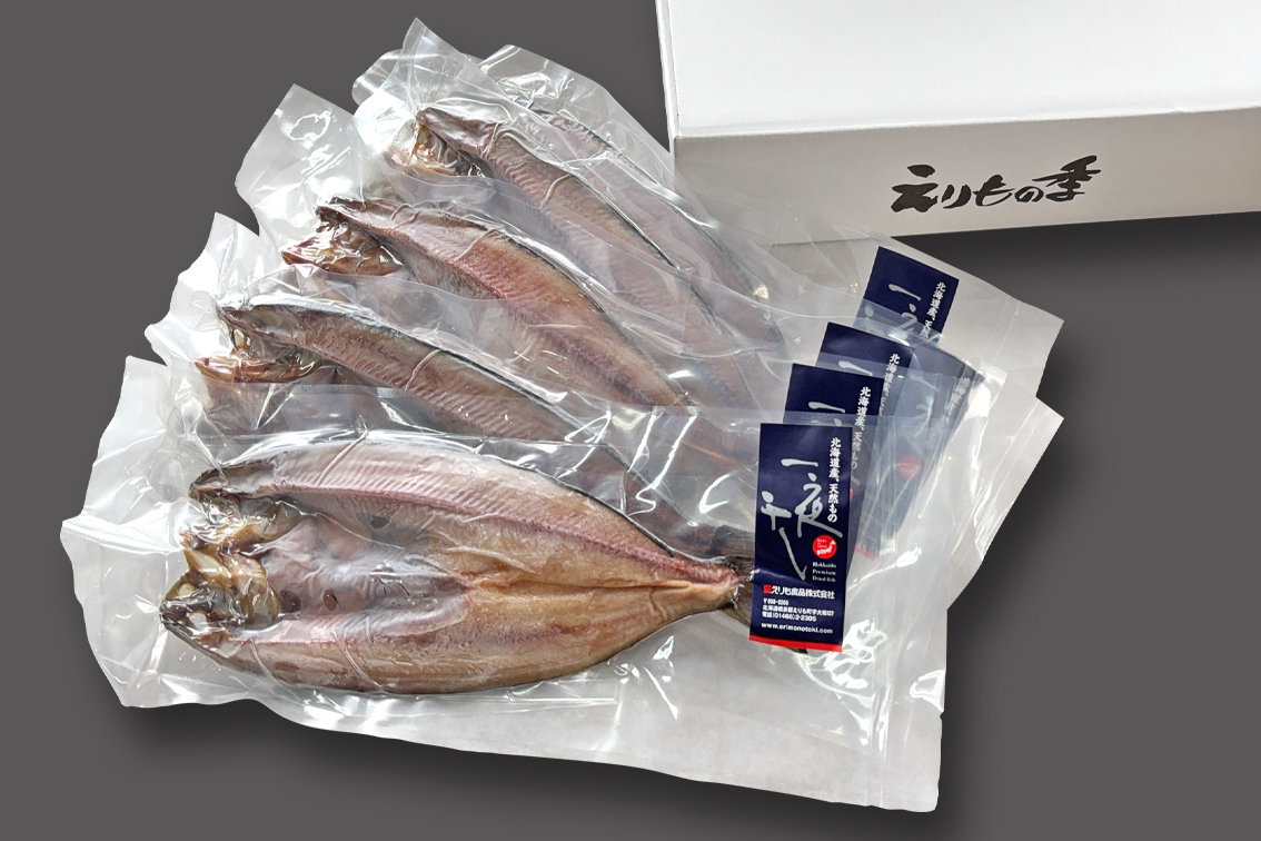 ほっけは北海道を代表する大衆魚のひとつ。開いて干したものを焼く「開きほっけ」がもっとも一般的な食べ方です。北海道のほぼ全域で水揚げされますが、信頼の名産地、道東で水揚げされた大型の脂のりの良いものをご用意しています。