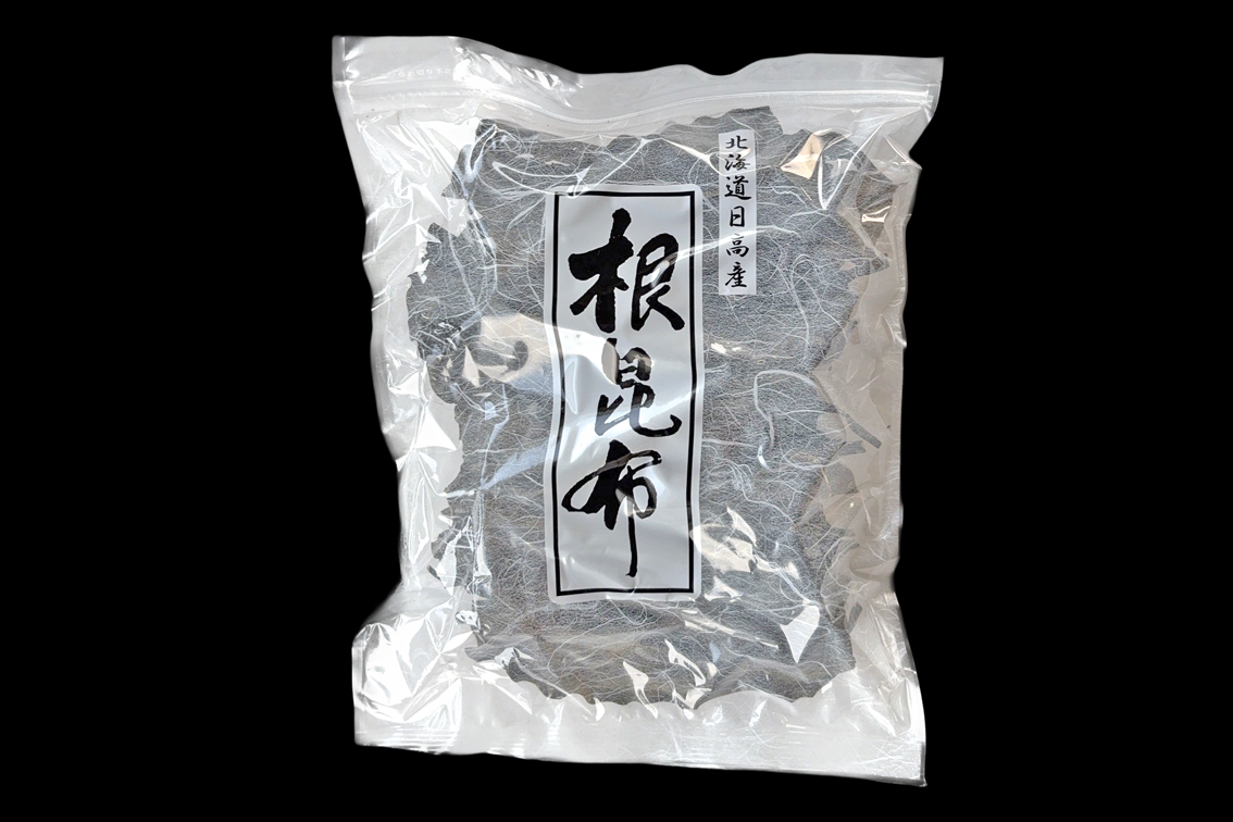 根昆布は、日高昆布の付け根の葉です。根(仮根)でも茎(葉柄)でもありません。細胞分裂が盛んで成長が早い根昆布は、水に浸したときのヌメリが多く、他の部分(葉の上部・茎)よりも栄養素が多いため、古くから健康づくりに役立つ民間薬として利用されてきました。昆布の栄養が凝縮された根昆布は、濃厚なだしが取れることで知られています。