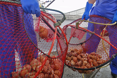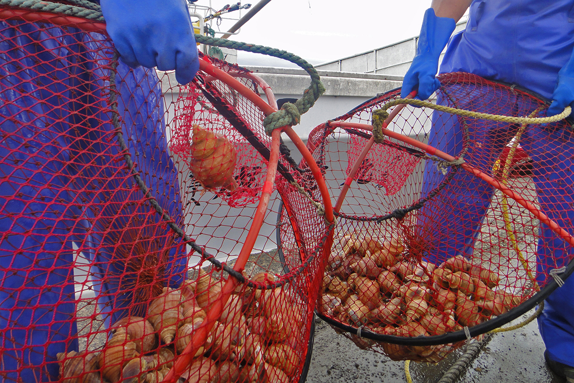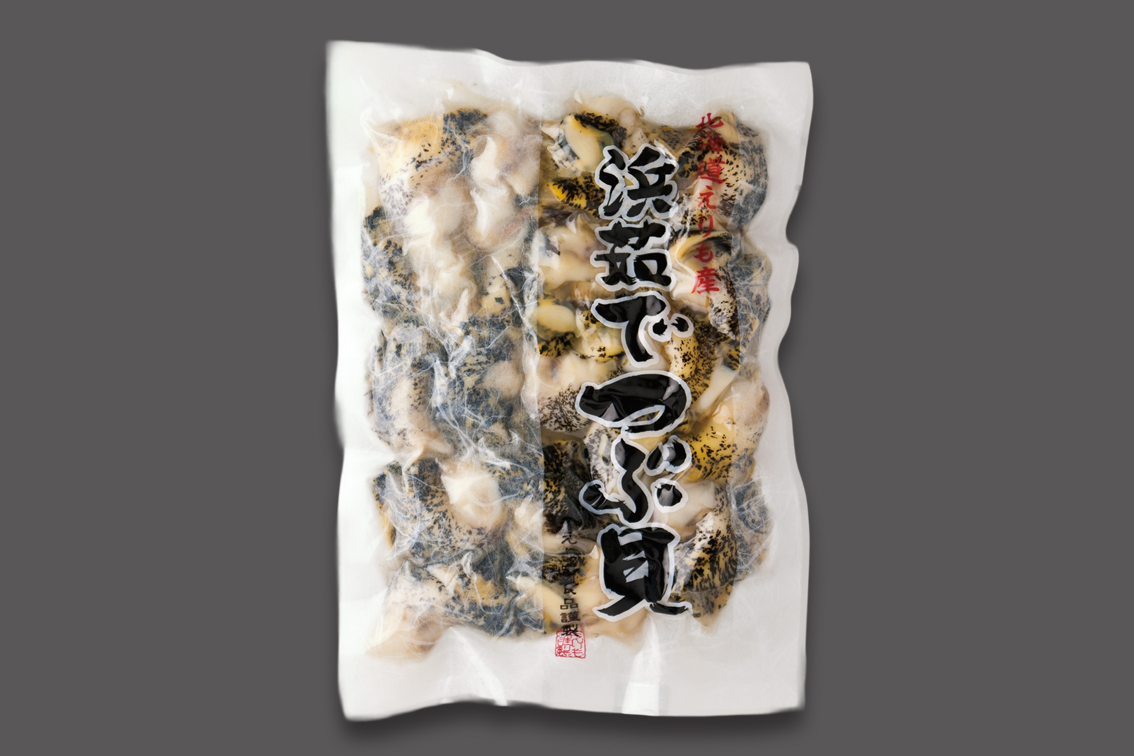 2. 獲れたての灯台つぶ貝を炊いて手剥きし、マイナス40℃の液体で瞬間凍結したお刺身用。バター焼きや煮つぶなどのお料理にも。北海道新千歳空港でも人気です。